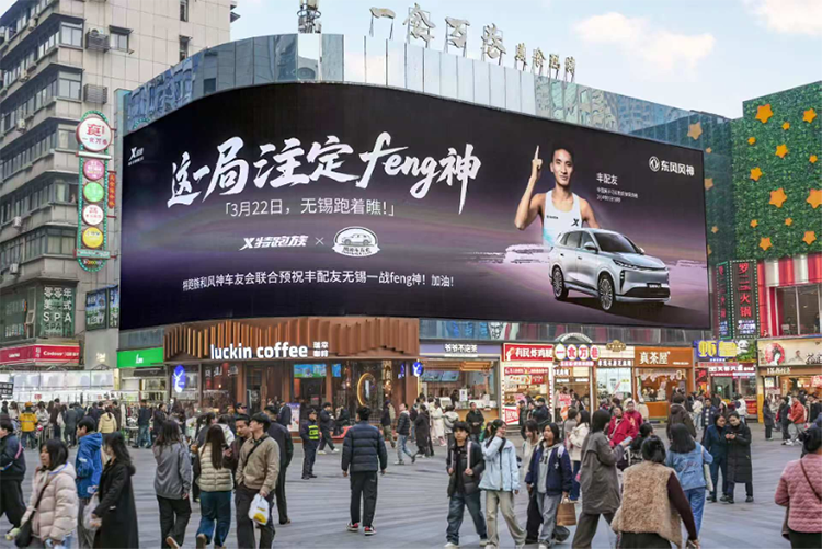 与此同时,东风风神车友会与特步特跑族实现深度跨界联动,无锡马拉松赛场外,联名户外广告为夺冠热门选手丰配友加油助威,这是风神与特步两大国货品牌的深度联动,亦是车友会与跑团的双向奔赴,形成线上线下双向引流,共同诠释“国产力量强强联合”的格局。