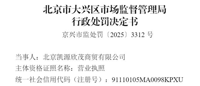 京兴市监处罚〔2025〕3312号行政处罚决定书显示,2025年1月22日,北京市大兴区市场监管局接到北京市总队《线索批办单》反映北京凯源商业贿赂行为。