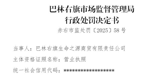 中国品牌与防伪杂志/中国消费品质量投诉网讯 近日,巴林右旗生命之源商贸有限责任公司(以下简称“巴林右旗生命之源”)因涉虚假宣传,依据相关法律法规,对该公司处以罚款20000元。