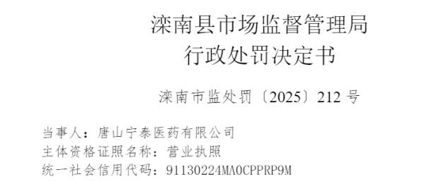 中国品牌与防伪杂志/中国消费品质量投诉网讯 近日,唐山宁泰医药有限公司(以下简称“唐山宁泰”)因涉非法渠道采购药品,依据相关法律法规,对该公司处以罚款10083元。