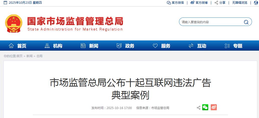 今年以来,市场监管部门围绕医疗、药品、医疗器械、保健食品、金融等重点领域,紧盯直播电商广告、AI生成广告等新兴业态,持续加大互联网广告监管执法力度,切实维护互联网广告市场秩序,有力防范互联网违法广告加剧市场非理性竞争。前三季度,全国市场监管部门共查处互联网违法广告案件22185件,罚没款1.11亿元。现选取一批已办结的互联网违法广告典型案例予以公布。