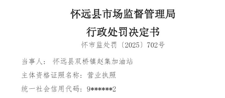 怀市监处罚〔2025〕702号行政处罚决定书显示,2025年5月14日怀远县市场监督管理局委托山东金质产品质量检测有限公司对当事人销售的0#车用柴油进行抽样送检,经检验,“闪点(闭口)”项目不合格。