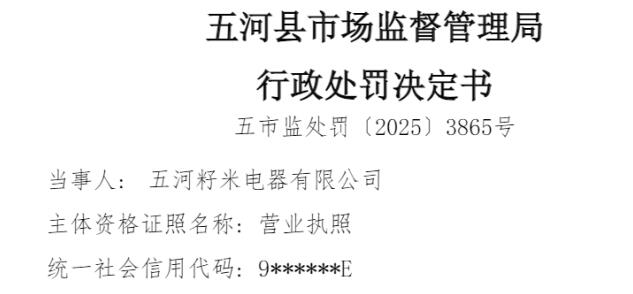 中国品牌与防伪杂志/中国消费品质量投诉网讯 近日,五河籽米电器有限公司(以下简称“五河籽米电器”)因涉销售不合格电器,依据相关法律法规,对该公司处以罚没款17132.76元。