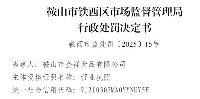 中国品牌与防伪杂志/中国消费品质量投诉网讯 近日,鞍山市金祥食品有限公司(以下简称“鞍山金祥食品”或“当事人”)因涉生产经营标签不符合规定的食品,依据相关法律法规,对该公司处以罚没款6000元。
