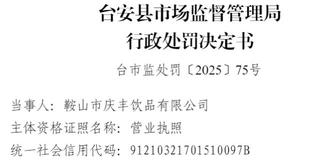 中国品牌与防伪杂志/中国消费品质量投诉网讯 近日,鞍山市庆丰饮品有限公司(以下简称“鞍山庆丰饮品”或“当事人”)因涉生产经营标签不符合规定的食品,依据相关法律法规,对该公司处以罚没款3819元。