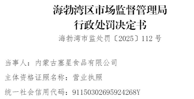 中国品牌与防伪杂志/中国消费品质量投诉网讯 近日,内蒙古塞星食品有限公司(以下简称“内蒙古塞星食品”或“当事人”)因涉在商品包装上使用其他条码冒充商品条码,依据相关法律法规,对该公司处以罚款3000元。