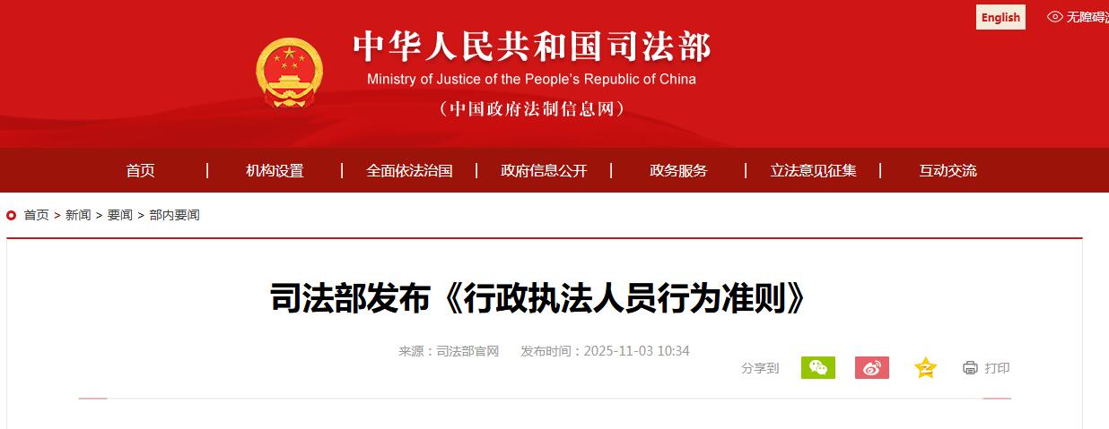按照“三定”规定,司法部负责指导、监督各地区各部门行政执法工作,推进严格规范公正文明执法。为深入学习贯彻习近平法治思想,督促行政执法人员树牢执法为民理念,提升企业和群众的获得感、幸福感、安全感,推动规范涉企行政执法专项行动进一步走深走实,促进经济社会高质量发展,根据《中华人民共和国行政处罚法》《中华人民共和国行政许可法》等,日前,司法部发布《行政执法人员行为准则》。