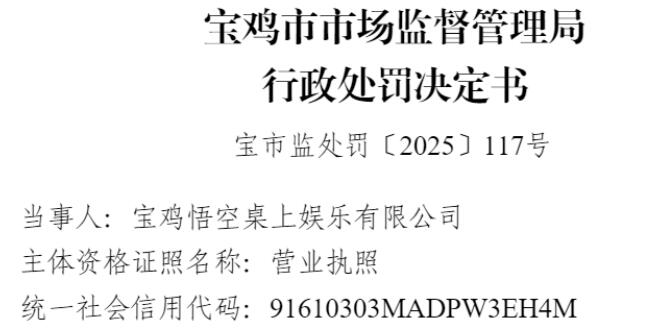 中国品牌与防伪杂志/中国消费品质量投诉网讯 近日,宝鸡悟空桌上娱乐有限公司(以下简称“宝鸡悟空娱乐”或“当事人”)因涉无证经营烟草,依据相关法律法规,对该公司处以罚款5115元。