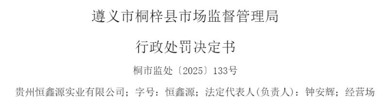 中国品牌与防伪杂志/中国消费品质量投诉网讯 近日,贵州恒鑫源实业有限公司(以下简称“贵州恒鑫源”或“当事人”)因涉侵犯他人注册商标专用权,依据相关法律法规,对该公司处以罚款14720元。