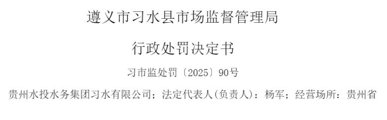 中国品牌与防伪杂志/中国消费品质量投诉网讯 近日,贵州水投水务集团习水有限公司(以下简称“贵州水投习水公司”或“当事人”)因涉违规收取水表装置费,依据相关法律法规,对该公司处以罚没款167151.45元。