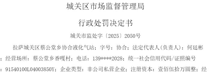 中国品牌与防伪杂志/中国消费品质量投诉网讯 近日,拉萨城关区蔡公堂乡协合液化气站(以下简称“拉萨协合液化气站”或“当事人”)因涉变相提高液化气销售价格,依据相关法律法规,对该液化气站处以罚没款31060元。