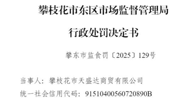 中国品牌与防伪杂志/中国消费品质量投诉网讯 近日,攀枝花市天盛达商贸有限公司(以下简称“攀枝花天盛达”或“当事人”)因涉经营兽药残留含量超过食品安全标准限量的食品,依据相关法律法规,对该公司处以罚没款10231元。