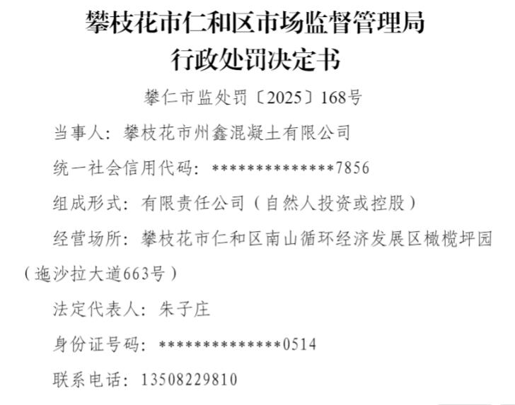 中国品牌与防伪杂志/中国消费品质量投诉网讯 近日,攀枝花市州鑫混凝土有限公司(以下简称“攀枝花州鑫混凝土”或“当事人”)因涉损毁产品质量监督抽查封存样品,依据相关法律法规,对该公司处以罚款10000元。