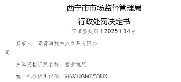 中国品牌与防伪杂志/中国消费品质量投诉网讯 近日,青海放牛点食品有限公司(以下简称“青海放牛点食品”或“当事人”)因涉生产不符合国家标准的食品,依据相关法律法规,对该公司处以罚没款5053.5元。