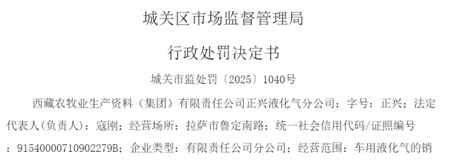 中国品牌与防伪杂志/中国消费品质量投诉网讯 近日,西藏农牧业生产资料(集团)有限责任公司正兴液化气分公司(以下简称“西藏正兴液化气”或“当事人”)因涉变相提高液化气销售价格,依据相关法律法规,对该公司处以罚款30000元。