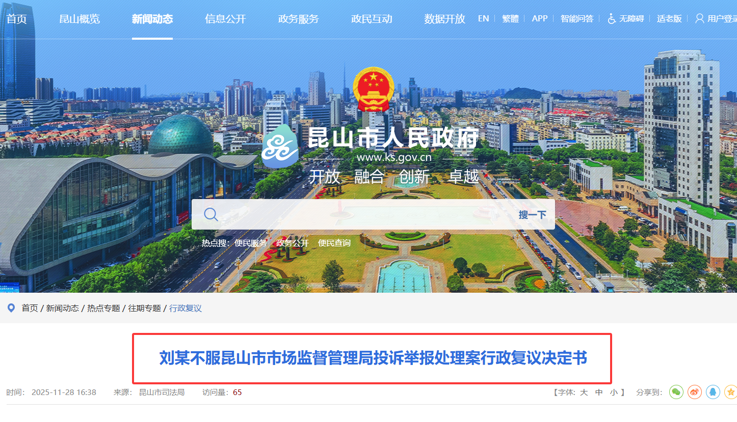 申请人刘某不服昆山市市场监督管理局针对工单编号:ZJ202500003X案件作出的不予立案决定,于2025年8月14日(收到日期)向本机关申请行政复议。本机关于2025年8月21日依法予以受理。因情况复杂,延期30日。现已审理终结。