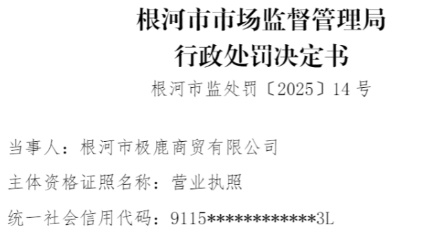中国品牌与防伪杂志/中国消费品质量投诉网讯 近日,根河市极鹿商贸有限公司(以下简称“根河极鹿商贸”或“当事人”)因涉经营超过保质期的食品,依据相关法律法规,对该公司处以罚款5000元。