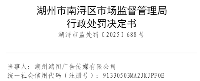 中国品牌与防伪杂志/中国消费品质量投诉网讯 近日,湖州鸿图广告传媒有限公司(以下简称“湖州鸿图广告传媒”或“当事人”)因涉侵犯注册商标专用权,依据相关法律法规,对该公司处以罚款10000元。