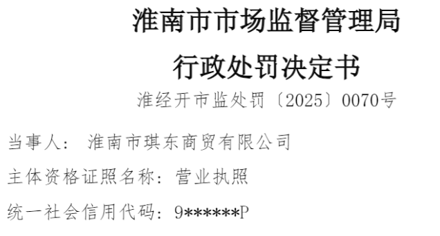 中国品牌与防伪杂志/中国消费品质量投诉网讯 近日,淮南市琪东商贸有限公司(以下简称“淮南琪东商贸”或“当事人”)因涉使用未经检验的特种设备,依据相关法律法规,对该公司处以罚款30000元。