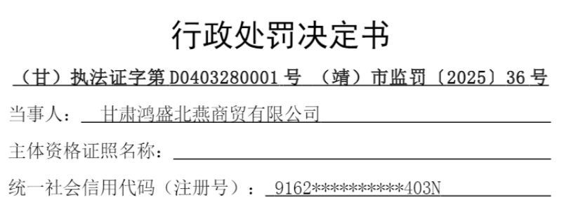 中国品牌与防伪杂志/中国消费品质量投诉网讯 近日,甘肃鸿盛北燕商贸有限公司(以下简称“鸿盛北燕商贸”或“当事人”)因涉生产经营不符合食品安全标准的食品,依据相关法律法规,对该公司处以罚没款2540元。