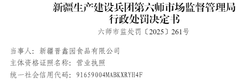中国品牌与防伪杂志/中国消费品质量投诉网讯 近日,新疆晋鑫园食品有限公司(以下简称“新疆晋鑫园食品”或“当事人”)因涉生产标签不符合规定的预包装食品,依据相关法律法规,对该公司处以罚没款23480元。