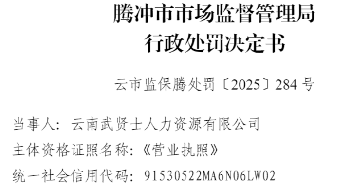 中国品牌与防伪杂志/中国消费品质量投诉网讯 近日,云南武贤士人力资源有限公司(以下简称“云南武贤士人力资源”或“当事人”)因涉向业主加价收取电费的行为,依据相关法律法规,对该公司处以罚款8738.39元。