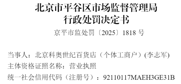 中国品牌与防伪杂志/中国消费品质量投诉网讯 近日,北京科奥世纪百货店(以下简称“当事人”)因涉发布虚假广告等行为,依据相关法律法规,对该公司处以罚款120390元。