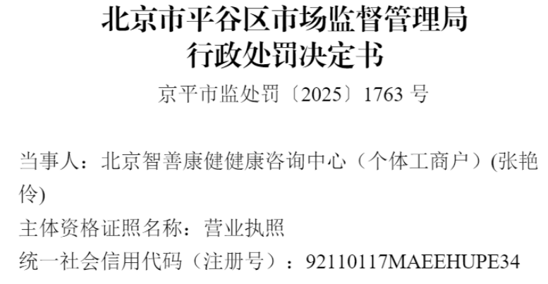 中国品牌与防伪杂志/中国消费品质量投诉网讯 近日,北京智善康健健康咨询中心(以下简称“北京智善康健”或“当事人”)因涉虚假商业宣传等行为,依据相关法律法规,对该公司处以罚款10000元。