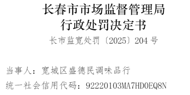 中国品牌与防伪杂志/中国消费品质量投诉网讯 近日,宽城区盛德民调味品行(以下简称“盛德民调味品行”或“当事人”)因涉销售侵犯注册商标专用权的商品,依据相关法律法规,对该公司处以罚没款150020元。