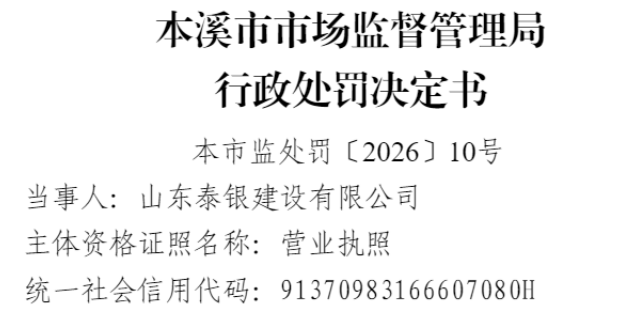 中国品牌与防伪杂志/中国消费品质量投诉网讯 近日,山东泰银建设有限公司(以下简称“山东泰银建设”或“当事人”)因涉对事故发生负有责任的违法行为,依据相关法律法规,对该公司处以罚款15万元。
