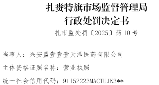 扎市监处罚〔2025〕药10号行政处罚决定书显示,扎赉特旗市场监督管理局执法人员于2025年9月30日收到扎赉特旗医疗保障局案件线索移送函后,执法人员根据该线索对辖区内当事人进行现场监督检查,发现当事人涉嫌未从药品上市许可持有人或者具有药品生产、经营资格的企业购进药品。