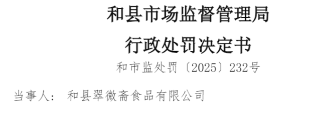 中国品牌与防伪杂志/中国消费品质量投诉网讯 近日,和县翠微斋食品有限公司(以下简称“和县翠微斋食品”或“当事人”)因涉办理设立登记业务时提供虚假材料,依据相关法律法规,对该公司处以罚款17万元。