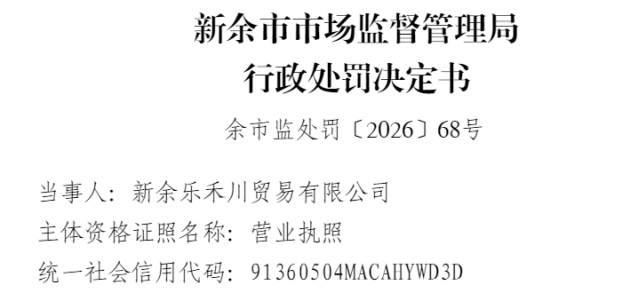 余市监处罚〔2026〕68号行政处罚决定书显示,2011 2025年10月9日,新余市市场监督管理局接到新余市望城工矿区人民检察院检察意见书,当事人涉嫌销售含有西地那非的保健食品的行为,其行为违反了《中华人民共和国食品安全法》第三十八条的规定。依据《中华人民共和国食品安全法》第一百二十三条第一款第六项的规定,建议予以立案。