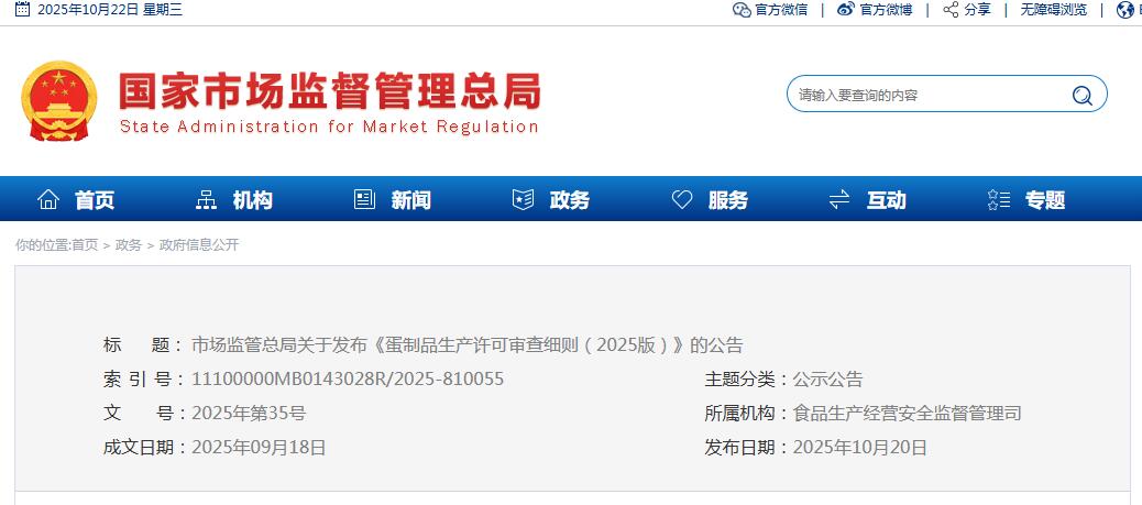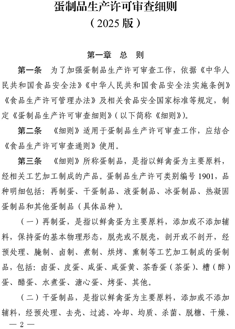 附件下载:市场监管总局关于发布《蛋制品生产许可审查细则(2025版)》的公告.pdf