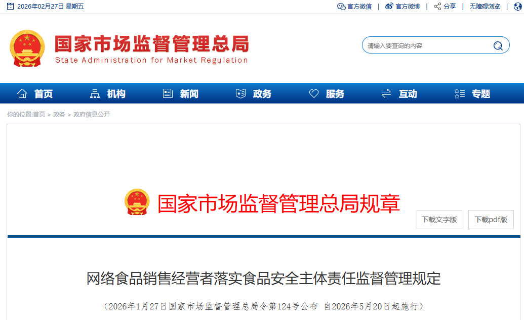 (2026年1月27日国家市场监督管理总局令第124号公布 自2026年5月20日起施行)